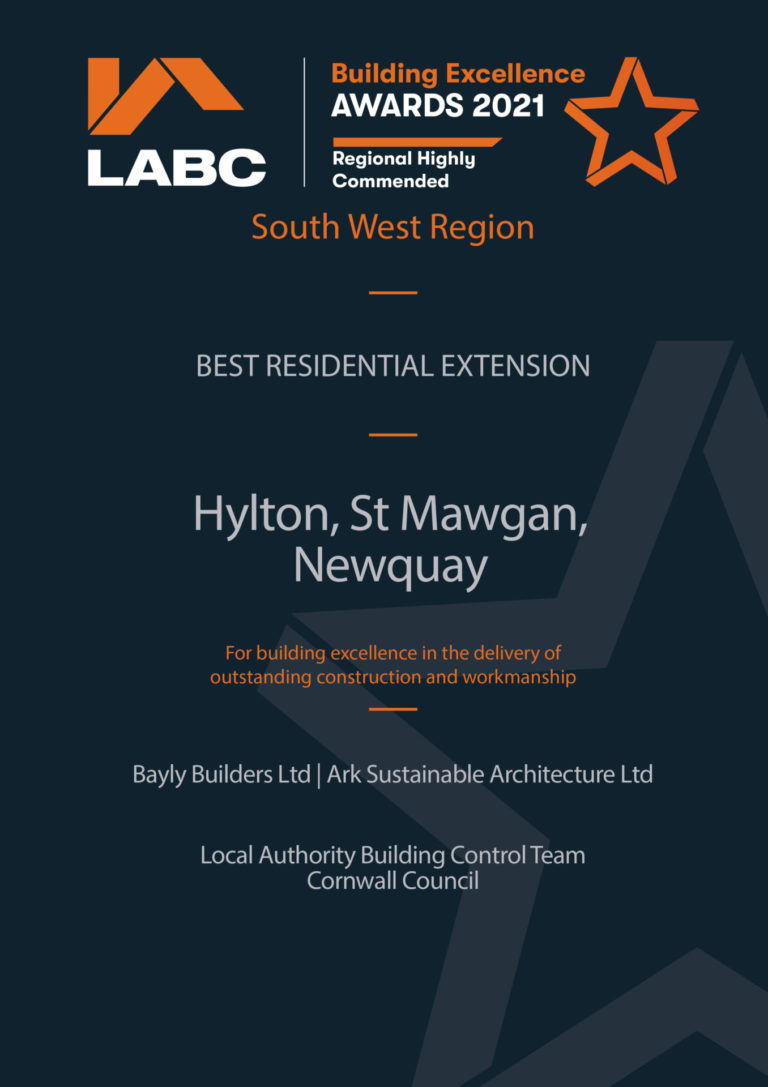 We have just won an award for the St Mawgan project we recently completed with Bayly Builders. Over the moon this was a great project